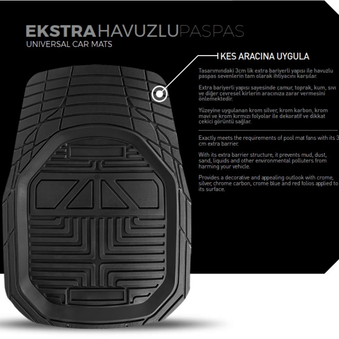 • Extra bariyerli yapısı sayesinde çamur, toprak, kum, sıvı ve diğer çevresel kirlerin aracınıza zarar vermesini önlemektedir.